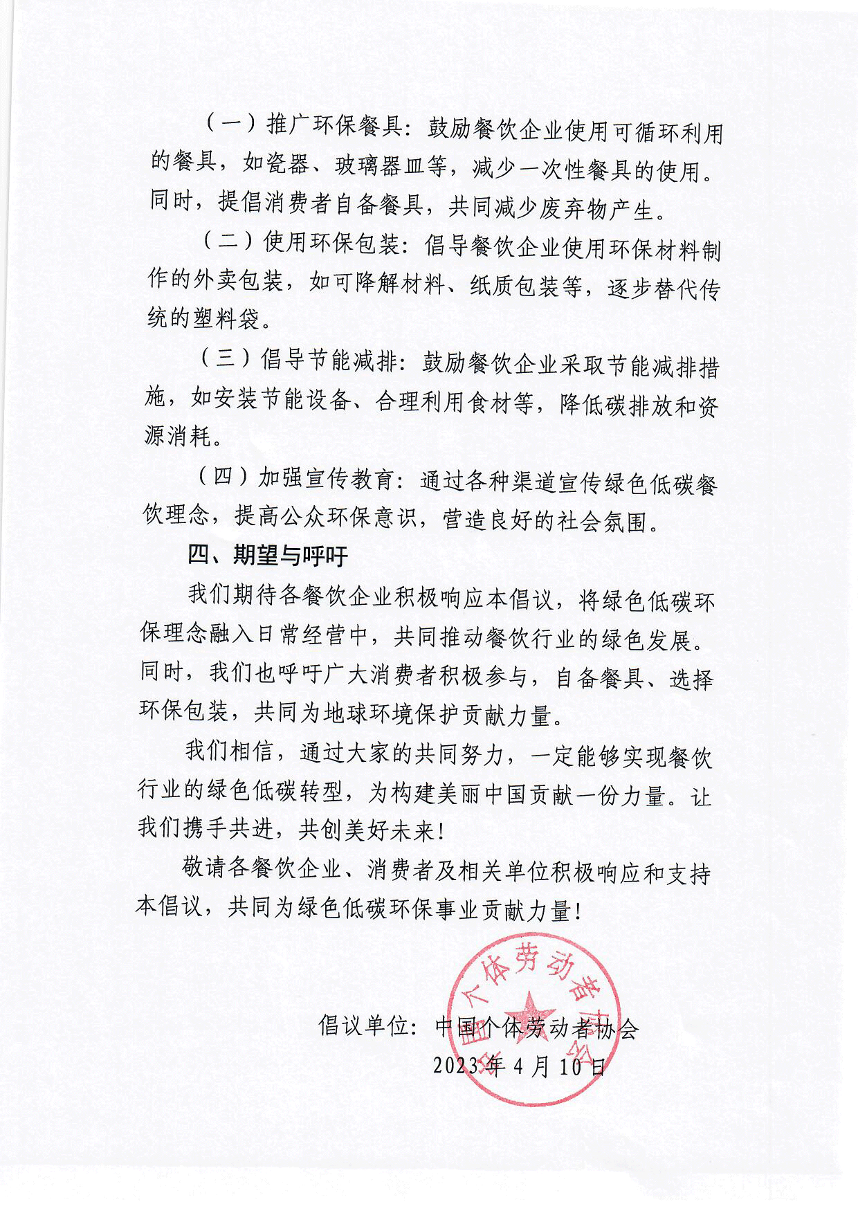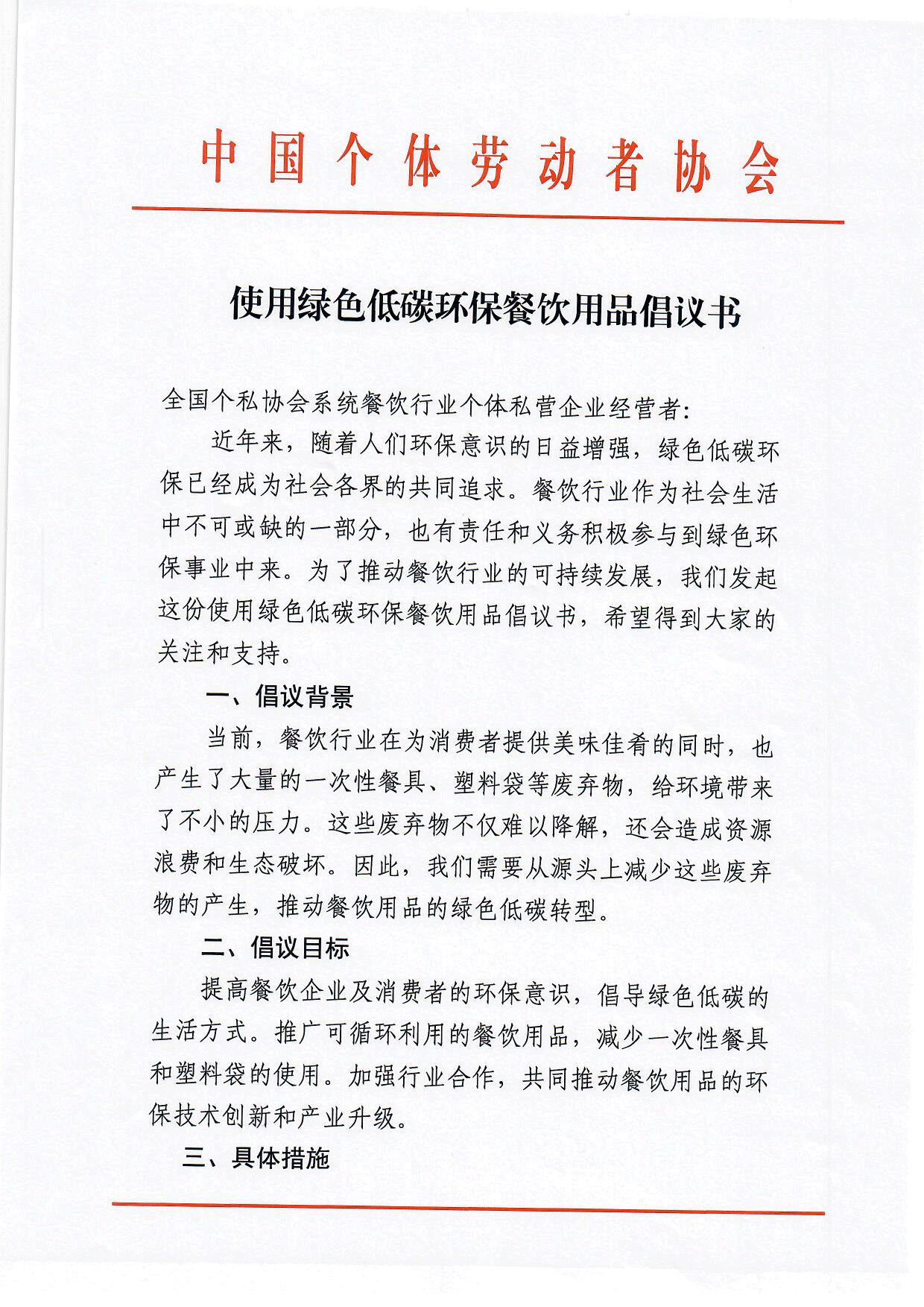 使用绿色低碳环保餐饮用品倡议书