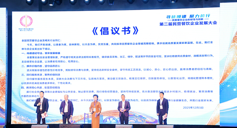 12月3日至4日,第二届民营餐饮企业发展大会在“世界美食之都”广东省佛山市顺德区成功举办。本次大会聚焦民营餐饮行业发展核心议题,汇聚政府相关领导、业内专家学者、民营餐饮企业及产业链代表 200 余人,共商行业发展大计,共绘产业升级蓝图。